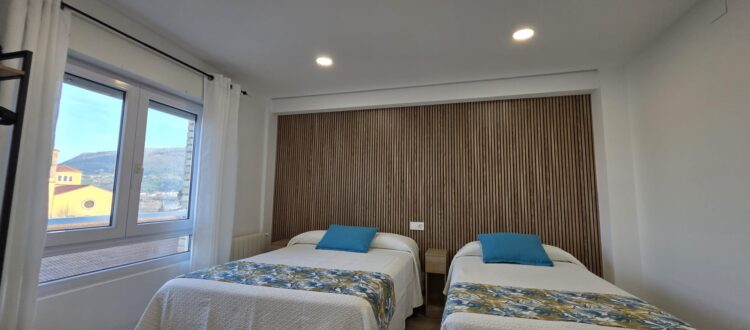 Conjunto privado formado por una habitación triple, una doble y un baño. Es ideal para un grupo o una familia que quiera independencia. Todas ellas tienen WI-FI, televisión, calefacción, frigorífico, secador de pelo y bandeja de bienvenida.